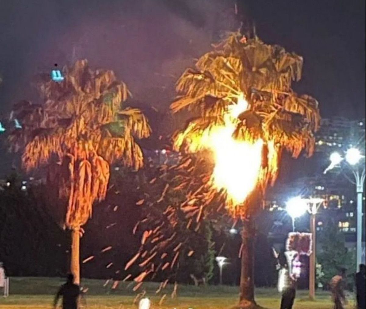 Palmiye ağacı bir anda alevler içerisinde kaldı.