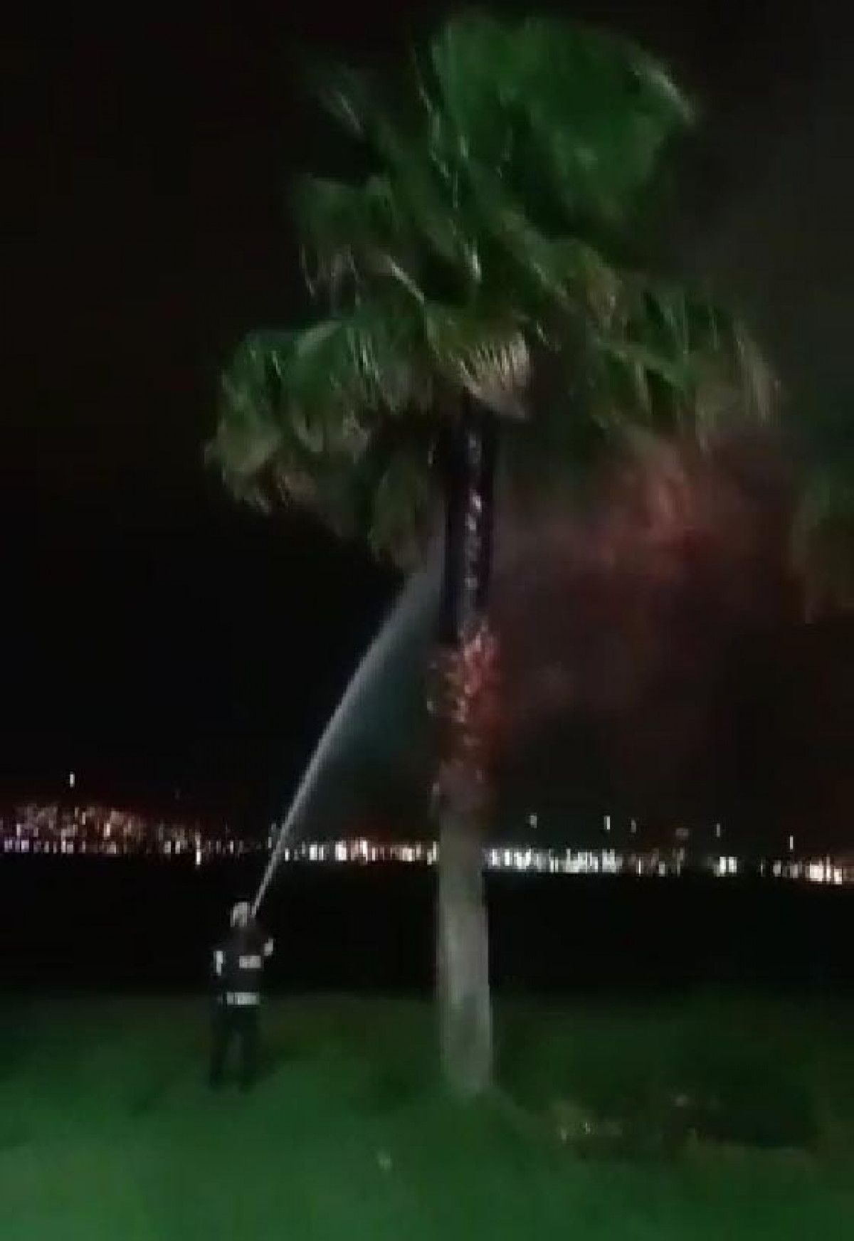 DHA’nın haberine göre vatandaşların haber vermesi üzerine gelen itfaiye ekibi, yanan palmiye ağacını söndürdü.