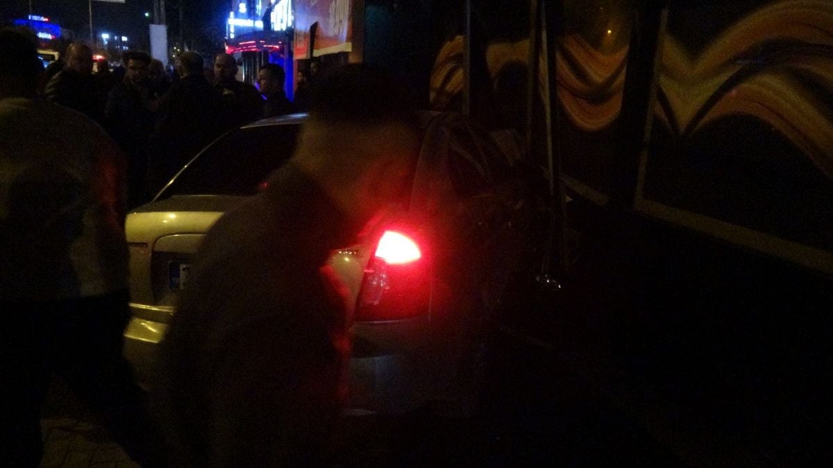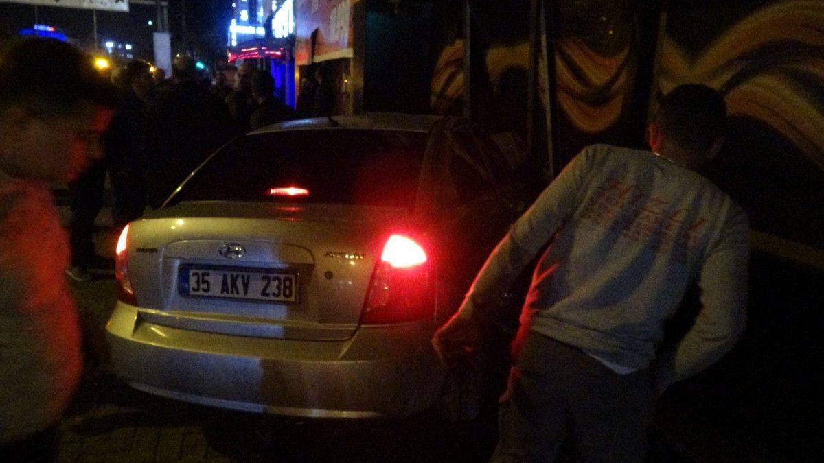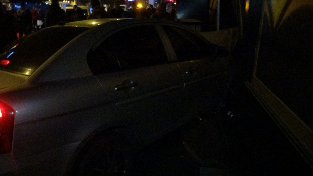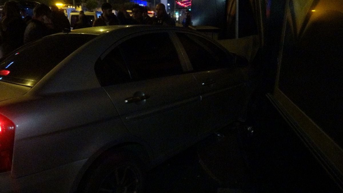 Çarpışmanın şiddetiyle savrulan 35 AKY 238 plakalı otomobil, gece kulübüne daldı.