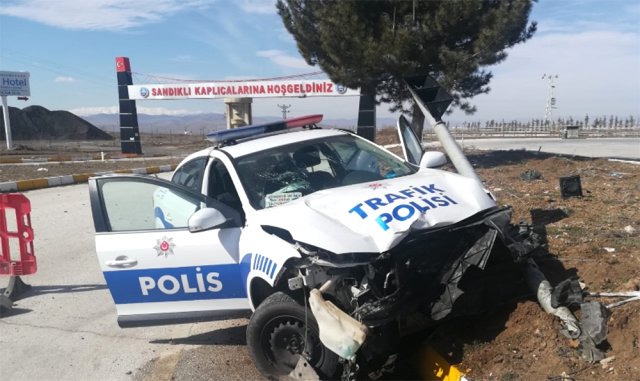 AFYONKARAHİSAR’ın Sandıklı ilçesinde polis aracıyla otomobilin çarpıştığı kazada, 2 polis memuru hafif yaralandı.