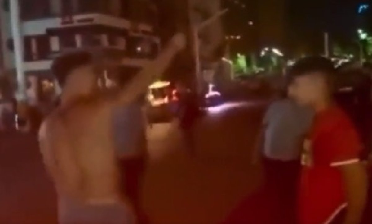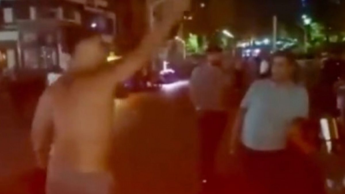 Bölgedeki bir vatandaş, grubun arasına dalarak eğlenceyi yarıda böldü. Önce gruptan birine sarılan vatandaş, ardından tişörtünü çıkararak “Burası Türkiye” diye bağırdı.
